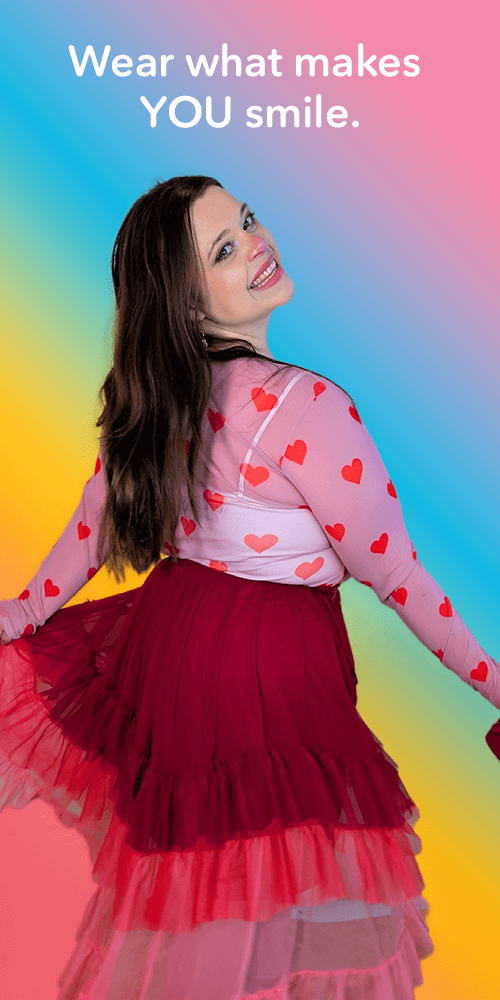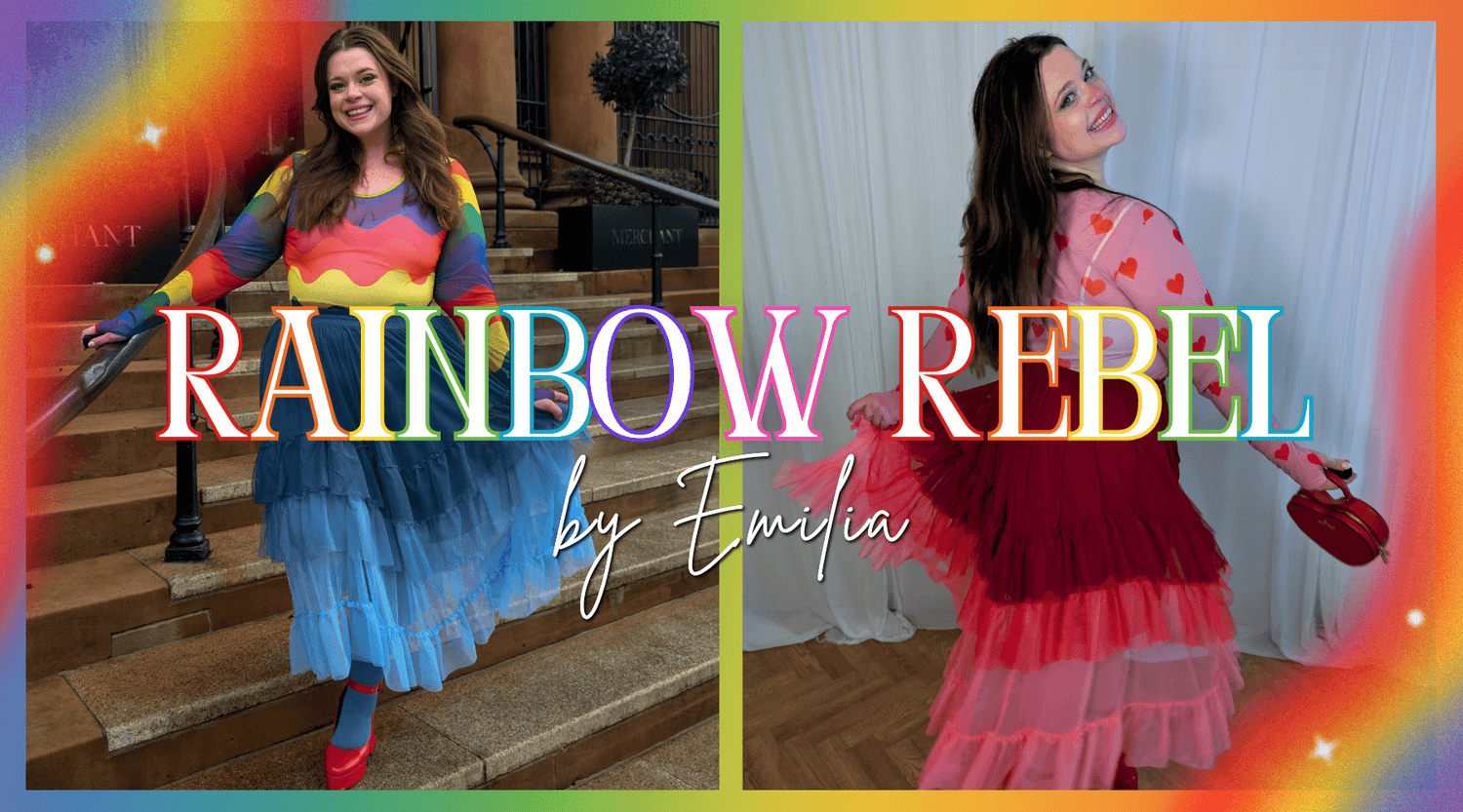 Like everything we do, the Rainbow Rebel collection is ethically made and fully size inclusive. Every single piece, from the mesh tops to the tiered skirts, is available in sizes EU 32 to 66. We believe joy comes in every size, and your clothes should fit you perfectly, not the other way around.