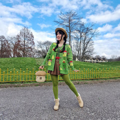 Style it with jeans and a tee for instant joy, layer it over a dress for playful contrast, or button it up and let the frogs do all the talking. Deep practical pockets are built in too, because cute should always be functional.
