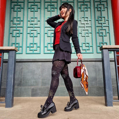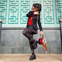 The rich black base gives these tights serious depth, while the silver and gold glitter reflects light beautifully as you move. Think night skies, celebratory chaos and that electric feeling just before something good happens. Whether you are ringing in the New Year, dancing into the early hours or just adding sparkle to an everyday outfit, these tights are made to shine.