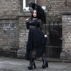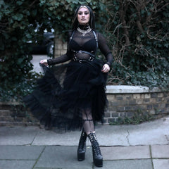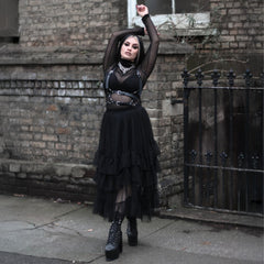 This is the skirt that does everything. Soft sheer layers that move like air, balanced with a smooth opaque lining so you always feel covered and confident. The wide elastic waistband sits comfortably without digging or rolling, and yes, it has pockets. Proper ones. Hidden flat so they hold your essentials without adding bulk. Dress it down with a tee and trainers or pair it with mesh, heels and attitude for full witching hour energy. However you wear it, it turns every moment into something a little more spellbinding.