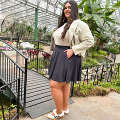 The flared shape gives you instant swish and freedom. Add in the mini length, and you have a skirt that stays playful and confident. It’s one of those pieces that just makes you feel good the second you put it on.
