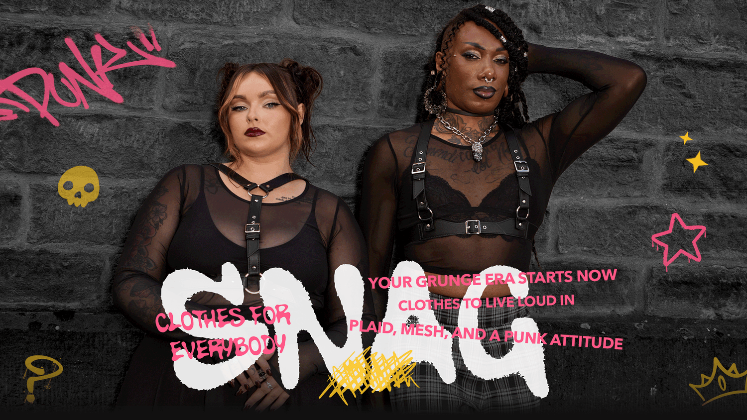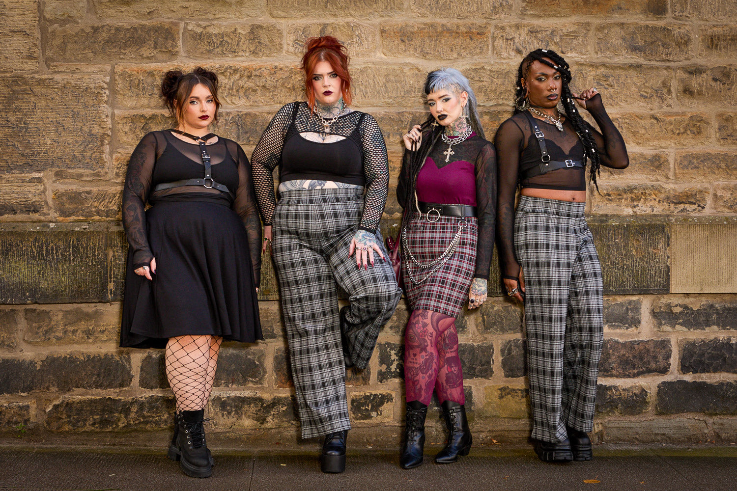 Shop our new Grunge collection, your home for alternative fashion that actually fits. We’ve got the punk staples you’ve been searching for, from plaid mini skirts to incredible wide-leg trousers, all designed for comfort and movement. Layer your look with our super-soft mesh tops and pair any outfit with our range of punk tights. Every piece is available in sizes 32-66, because we believe in creating clothing for all of us.