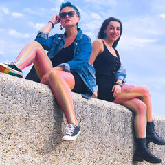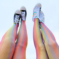 Impresionantes medias de rejilla arcoíris, perfectas para usar solas o en capas. Dale un toque moderno a cualquier look con estas mallas que se ajustan a la perfección.