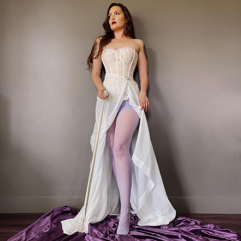 A swirling lace pattern that feels like it’s from another time and place. That's the magic of our Timewarp tights, now available in a new, dreamy shade of Periwinkle purple.