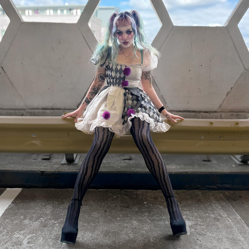 These aren't your average witchy stripes. The Hellbent tights feature a chaotic, jagged pattern that looks like you've glitched on your way back from the underworld. It's a seriously cool, distorted take on a classic goth staple, perfect for days when you're feeling a little wicked.