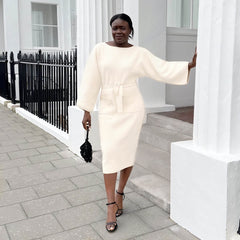 Presentamos el vestido Snag Cocoon en un suave y encantador tono Avena. Confeccionado con nuestro tejido de punto característico, este vestido ofrece una comodidad envolvente y un ajuste favorecedor para todas las figuras. Su elegante largo midi llega justo por debajo de la rodilla, mientras que el lazo extraíble en la cintura te permite transformar tu look en segundos. Ajústalo para definir la cintura o llévalo suelto para un look fluido y relajado.