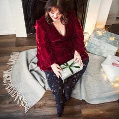 The cosy 80 denier fabric gives you warm, opaque coverage, while the glitter motifs catch the light beautifully with every step. Whether you are headed to a Christmas party, dressing up for winter celebrations or simply want to add a touch of seasonal sparkle to everyday outfits, these tights strike the perfect balance between magical and wearable. They pair effortlessly with velvet dresses, cosy knits and everything in between. Made with Snag’s signature super-stretchy fit, Winter Solstice mould comfortably to your body and stay perfectly in place all day. The high waistband sits smoothly without rolling or pinching, and the breathable cotton gusset keeps you feeling fresh from morning stargazing to midnight festivities. Soft, durable and wonderfully festive, these tights are ready to light up your winter.