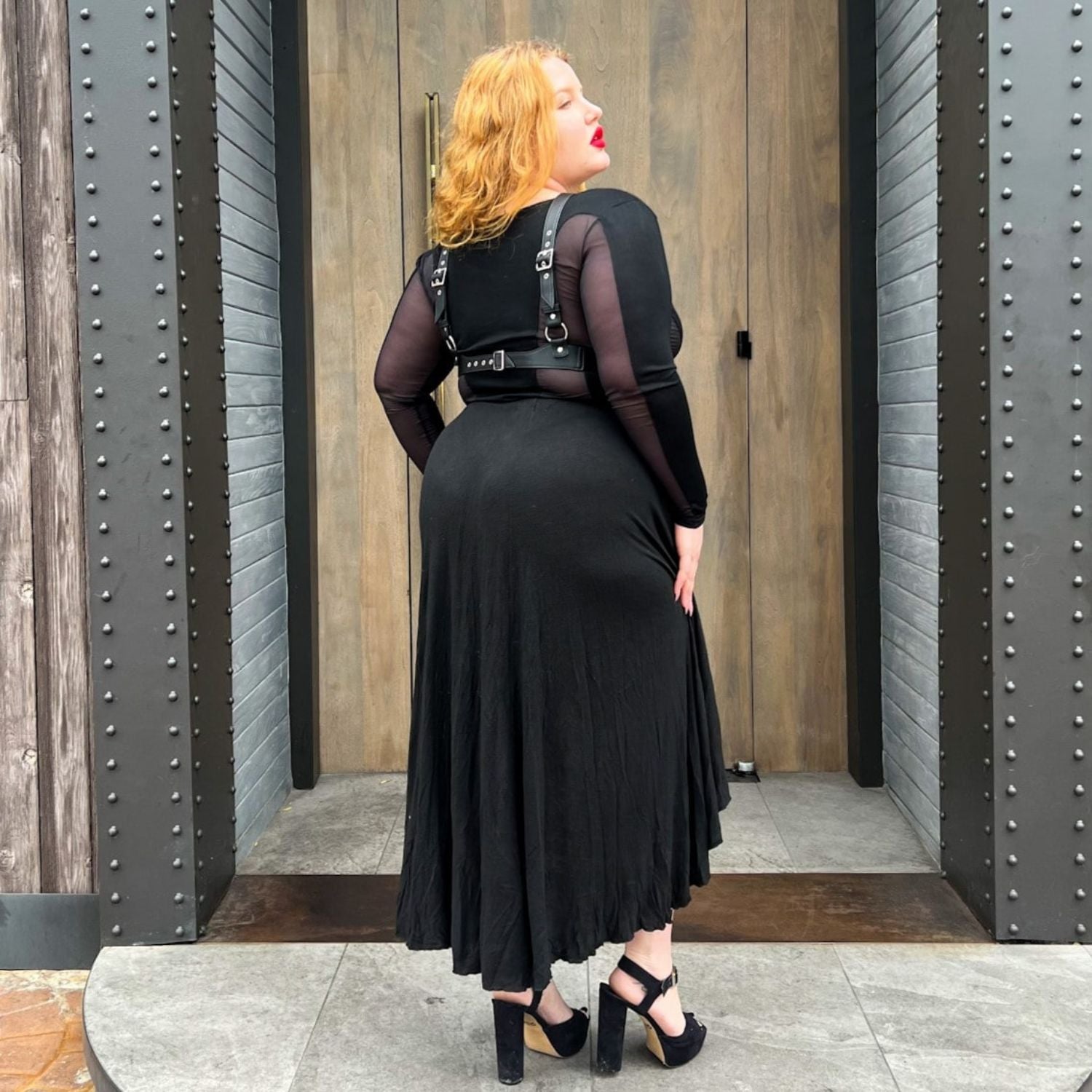 Body harnesses that fit are so hard to find, so you know Snag had to create a stunning O-Ring body harness, in our whole size range. This is a super soft, faux leather, with adjustable straps, metal buckles and O-ring detailing. It has stretchy panels hidden at the sides, so you can still breath when moving or sitting down. It can be worn two ways, with the O-rings to the front down the chest, or buckle front as an under bust. It's bold, it's a statement and it really fits.