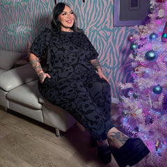Our Catacomb PJ Set turns lights-out into a deliciously dark ritual. Slip into our exclusive slate-skulls-on-black print (the very same gothic masterpiece from our sell-out Catacomb Plushie towel) and suddenly bedtime feels like stepping into your own private crypt.